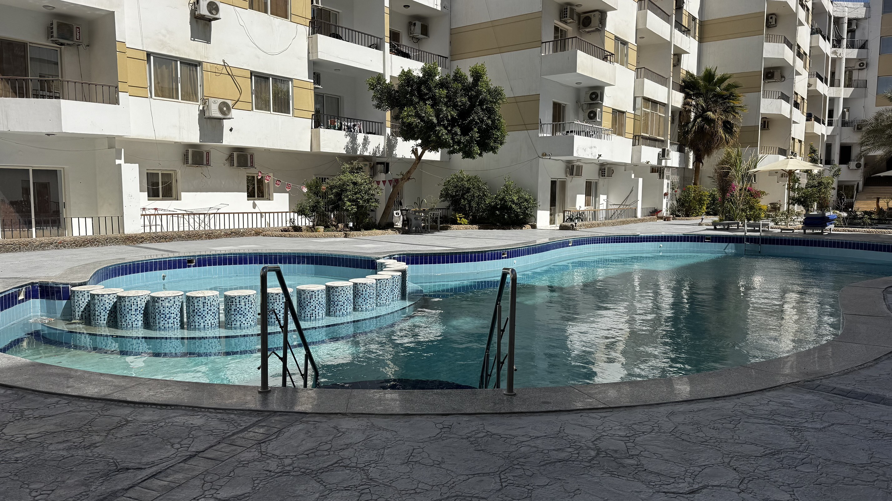 Residential compound with a swimming pool, security and elevators.
