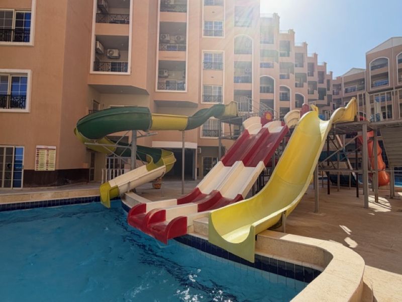 Finished studio located in Juliana Compound, in El Ahya area, north of Hurghada city, Red Sea. The compound offers excellent amenities including a private beach, swimming pools, and an aqua park, making it ideal for both personal use and investment.