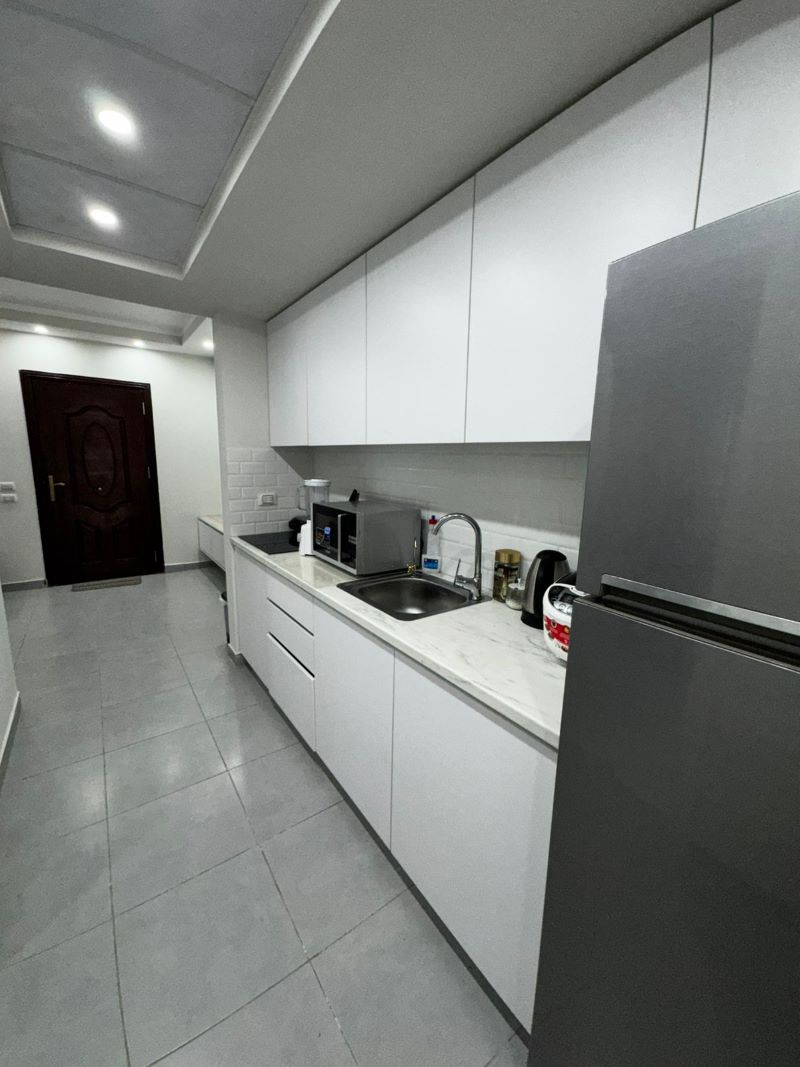 Apartment is nicely furnished and decorated; equipped with air conditioner, tv, big fridge, water heater, electric kitchen appliances.