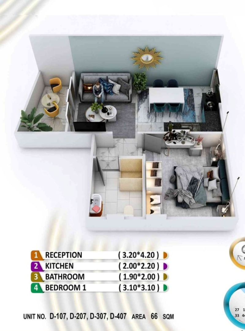 A spacious 66 m² apartment will be located on the fourth floor of the new Grand Gate residential complex — a unique place for living and relaxing in Hurghada.