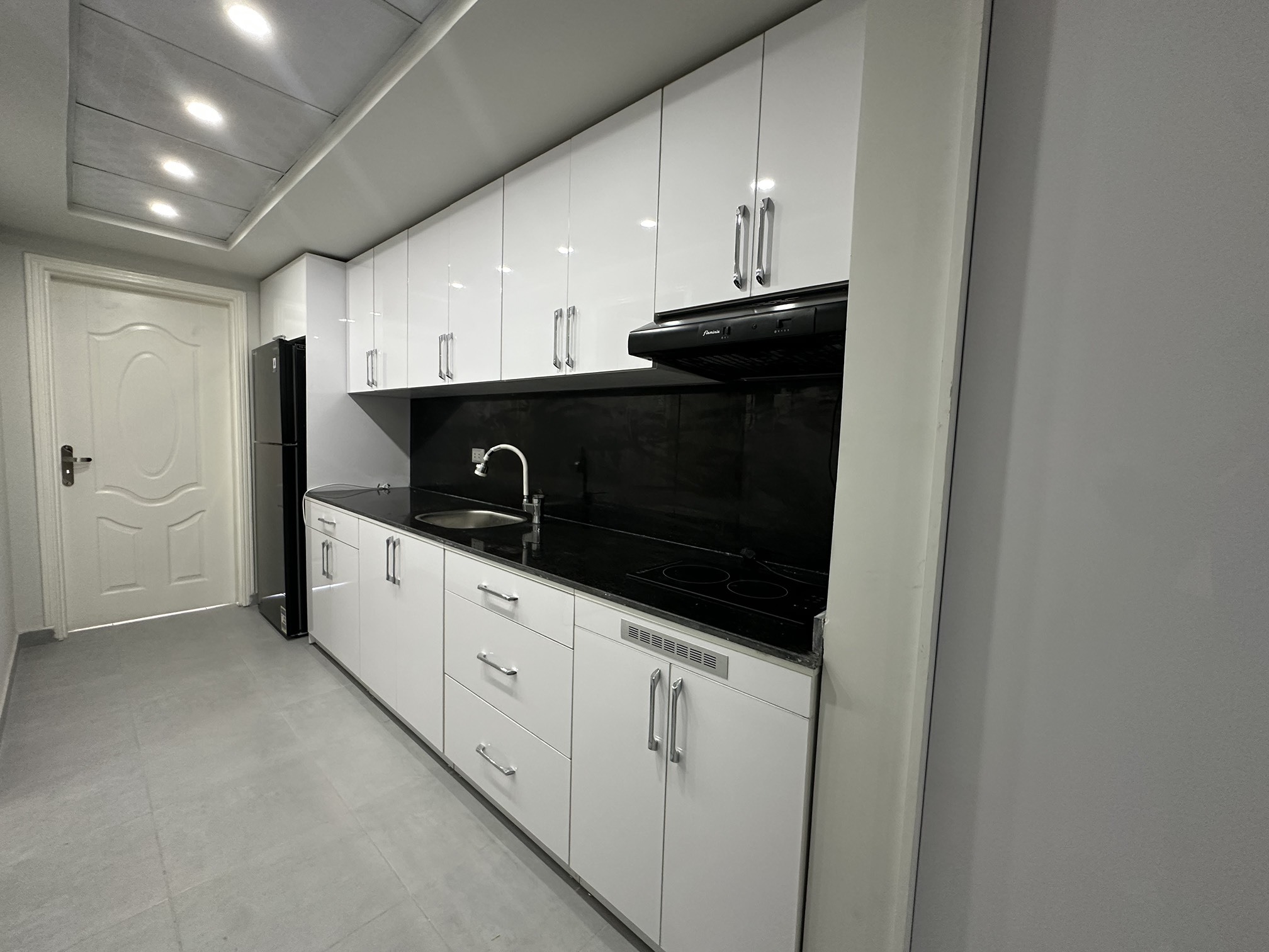 The apartment is fully furnished with brand-new furniture and appliances. Air conditioning is installed.