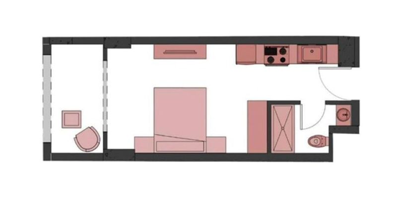 Гостиная, кухня открытого плана, ванная комната, балкон.