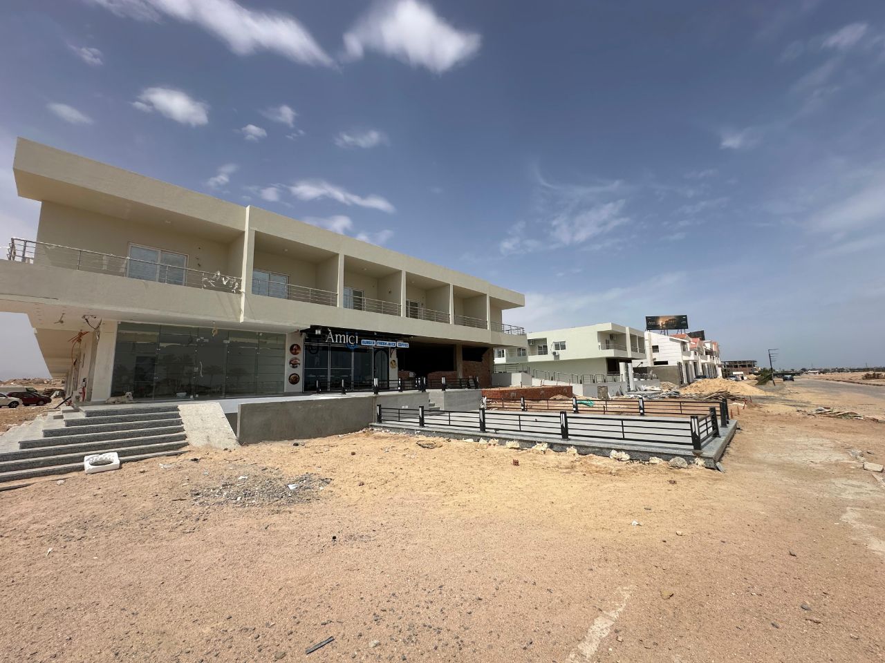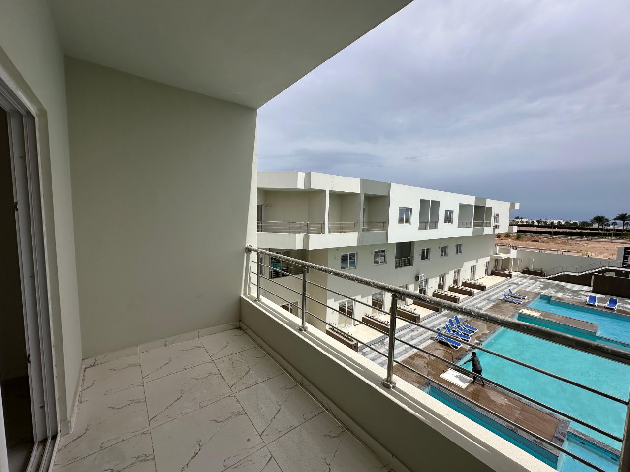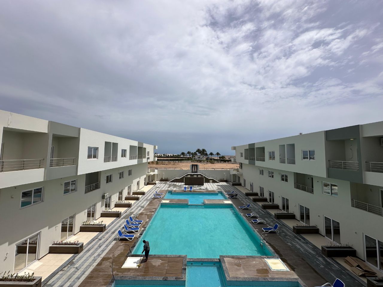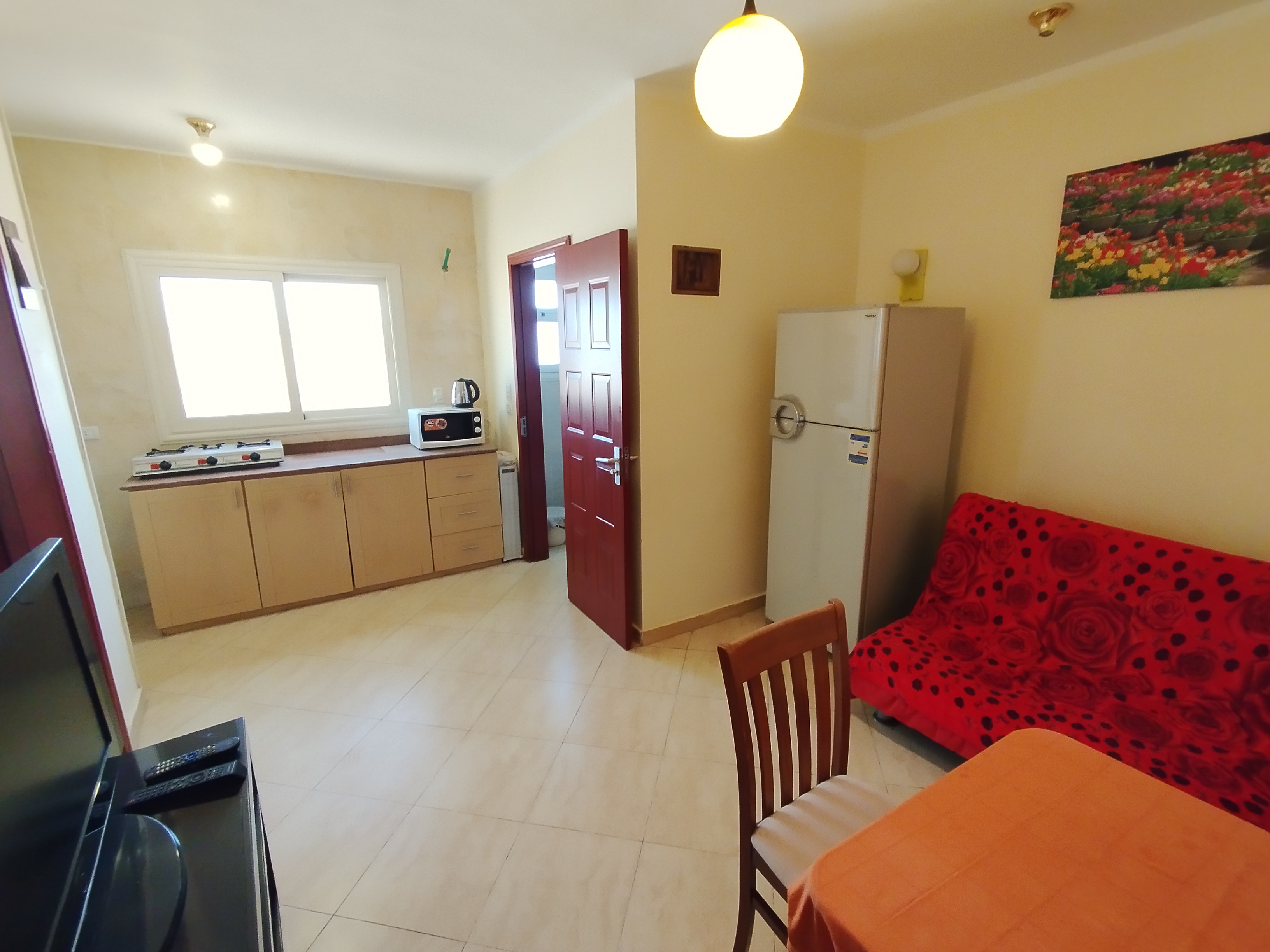 Квартира расположена в популярном и престижном районе Магавиш, напротив отеля Mercure, в удобной локации между Сахл Хашиш и центром Хургады, рядом с известными и роскошными отелями. Район отличается развитой инфраструктурой: поблизости находятся аэропорт, супермаркеты, кафе, рестораны, аптеки и больница.
