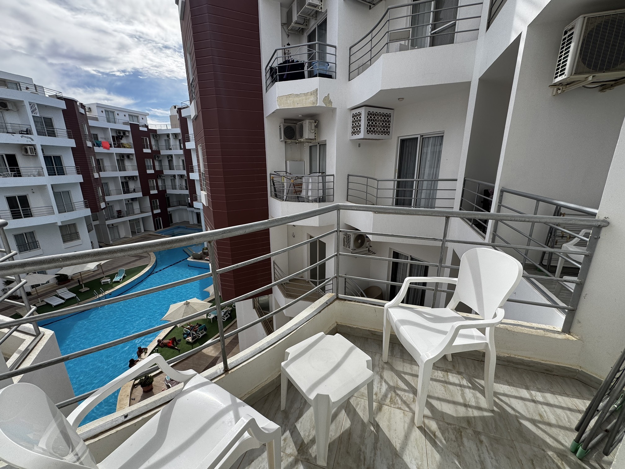 Студия с балконом и красивым видом на бассейн.